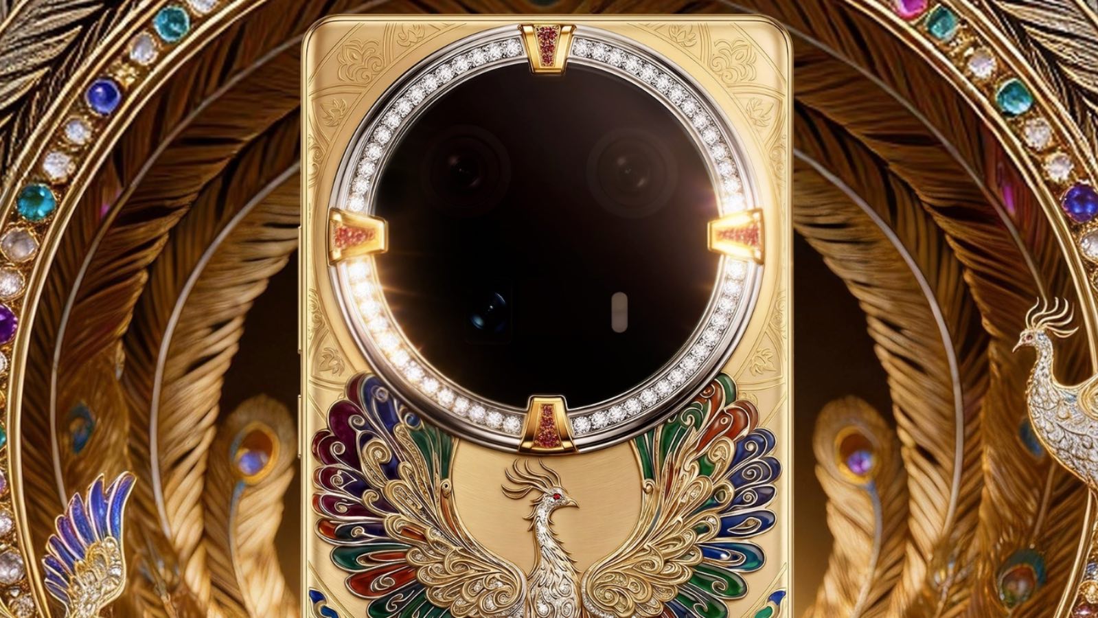 The images depict a new premium smartphone: Dreame Aurora is equipped with two exclusive styles featuring a phoenix and a dragon, both in gold pure with the addition of precious stones and diamonds authentic.