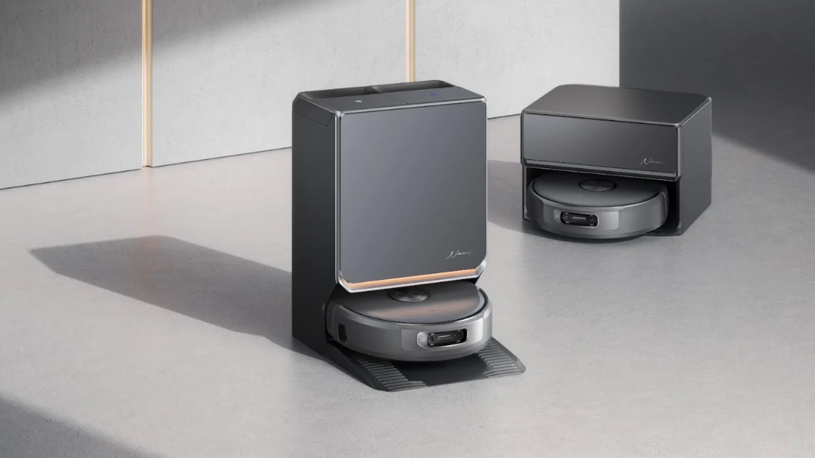 After each cycle, the base activates a hot air drying at 60°C, keeping the entire system clean and odor-free. For those with smaller spaces, there is also a version with a compact base station, standing only 28 cm tall, which offers the same level of autonomy in a more compact and elegant form.