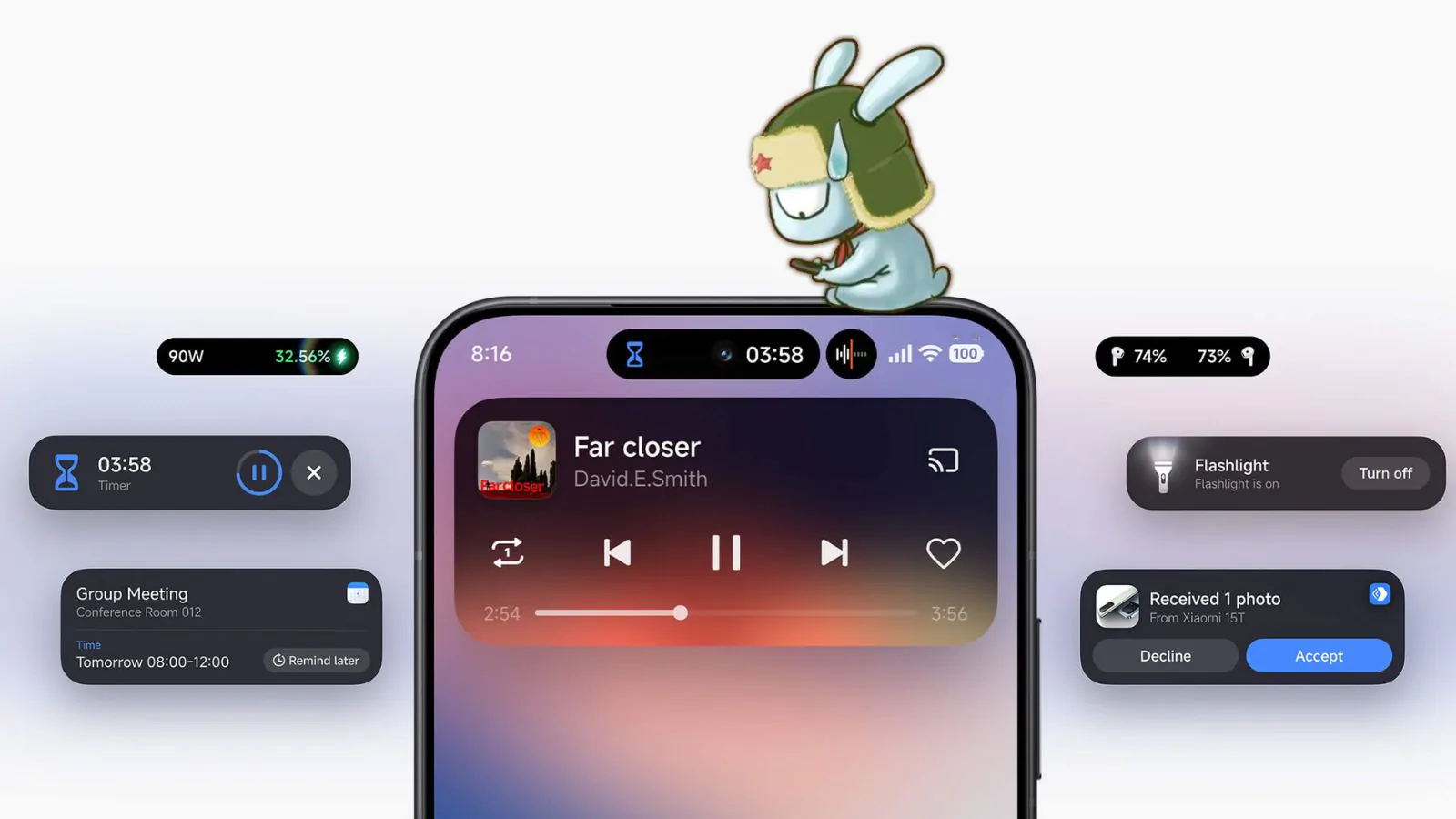 The HyperOS 3 update has seen the transformation of the dynamic island in Cupertino style introduced by the previous version. Renamed HyperIsland, the feature allows access to a greater number of controls and is compatible with numerous applications.